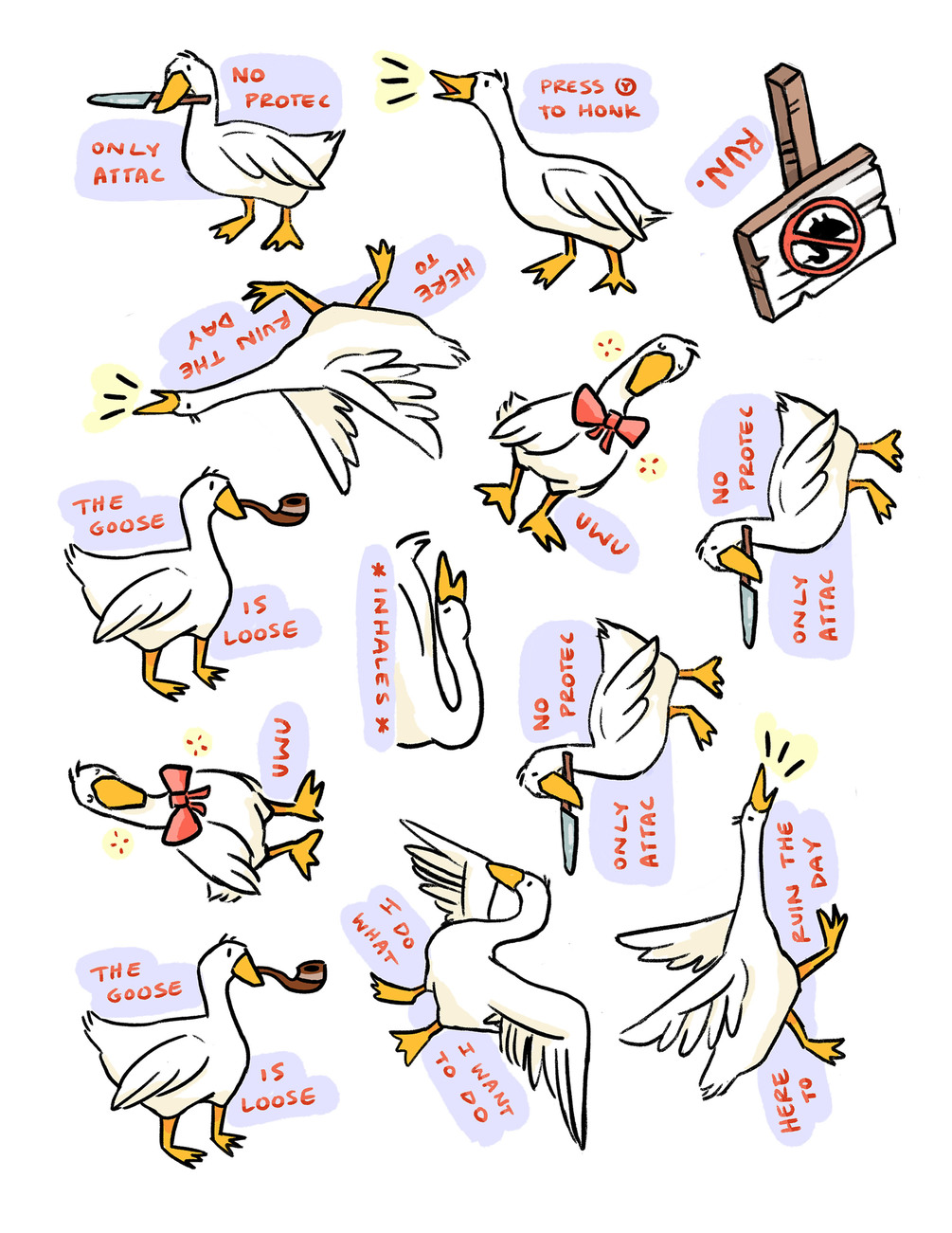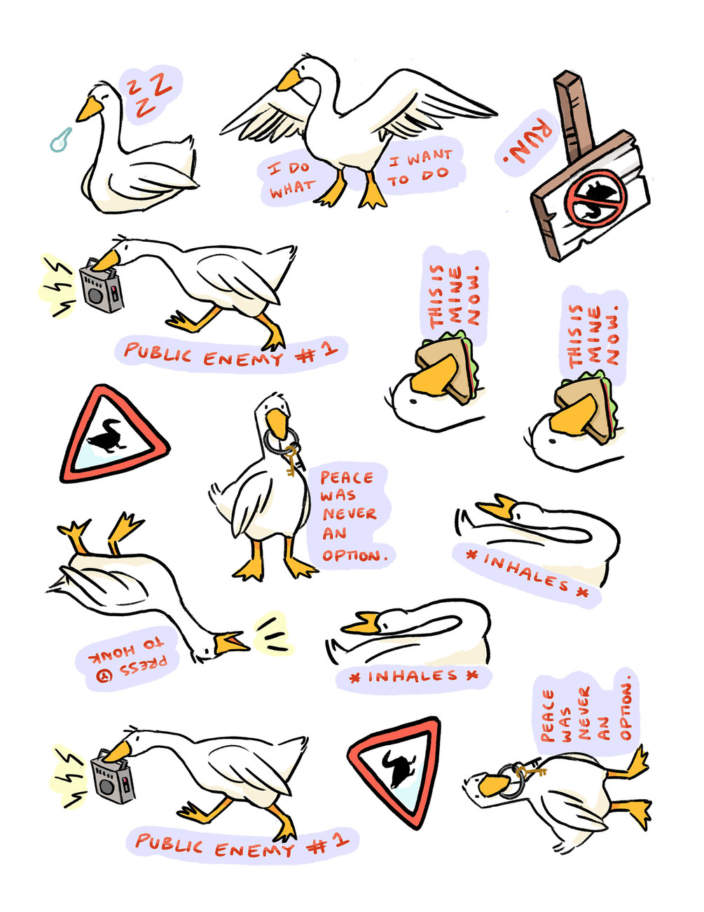 Two high res digital downloads of the goose menace. Print them out on gossy or matte label paper and voila! Stickers!